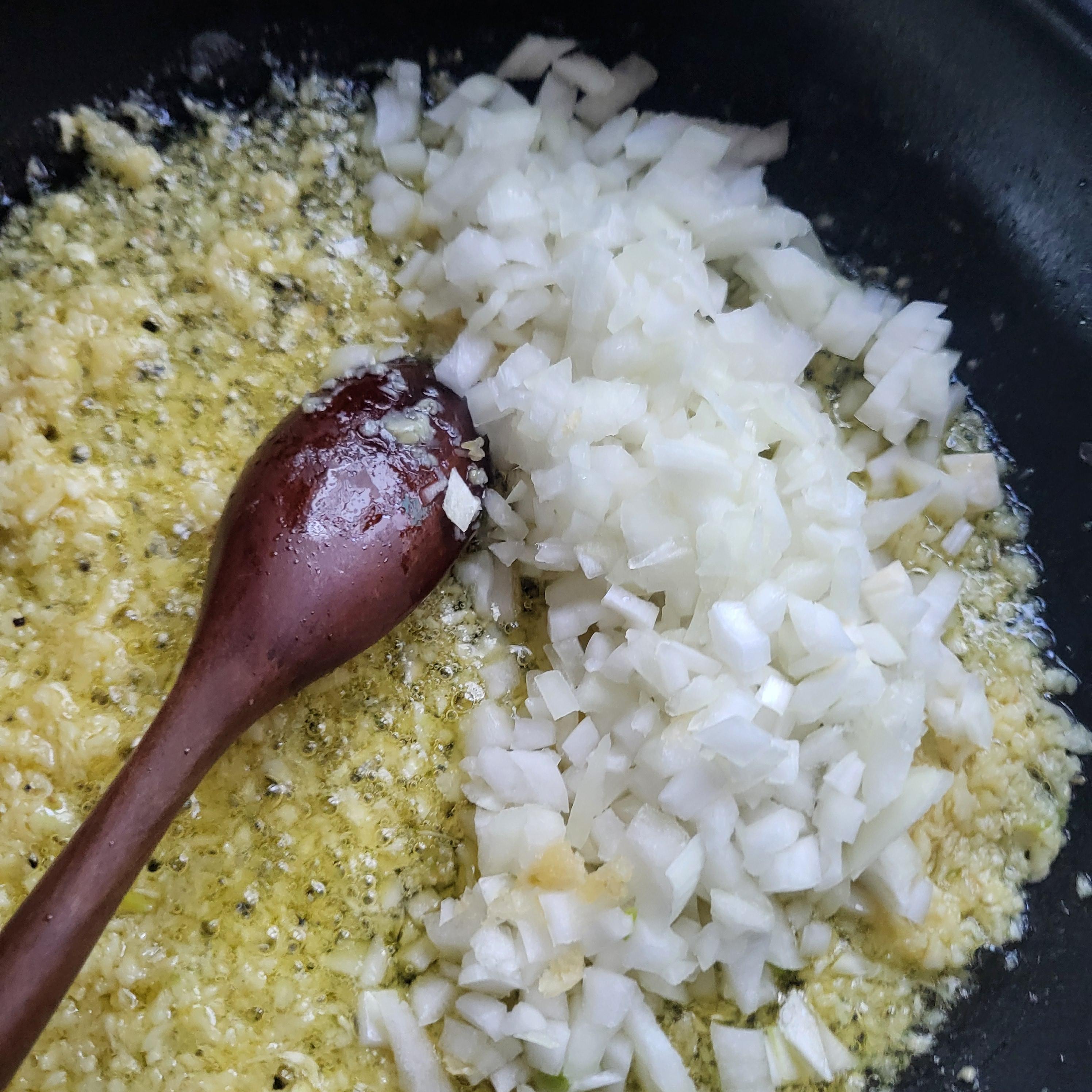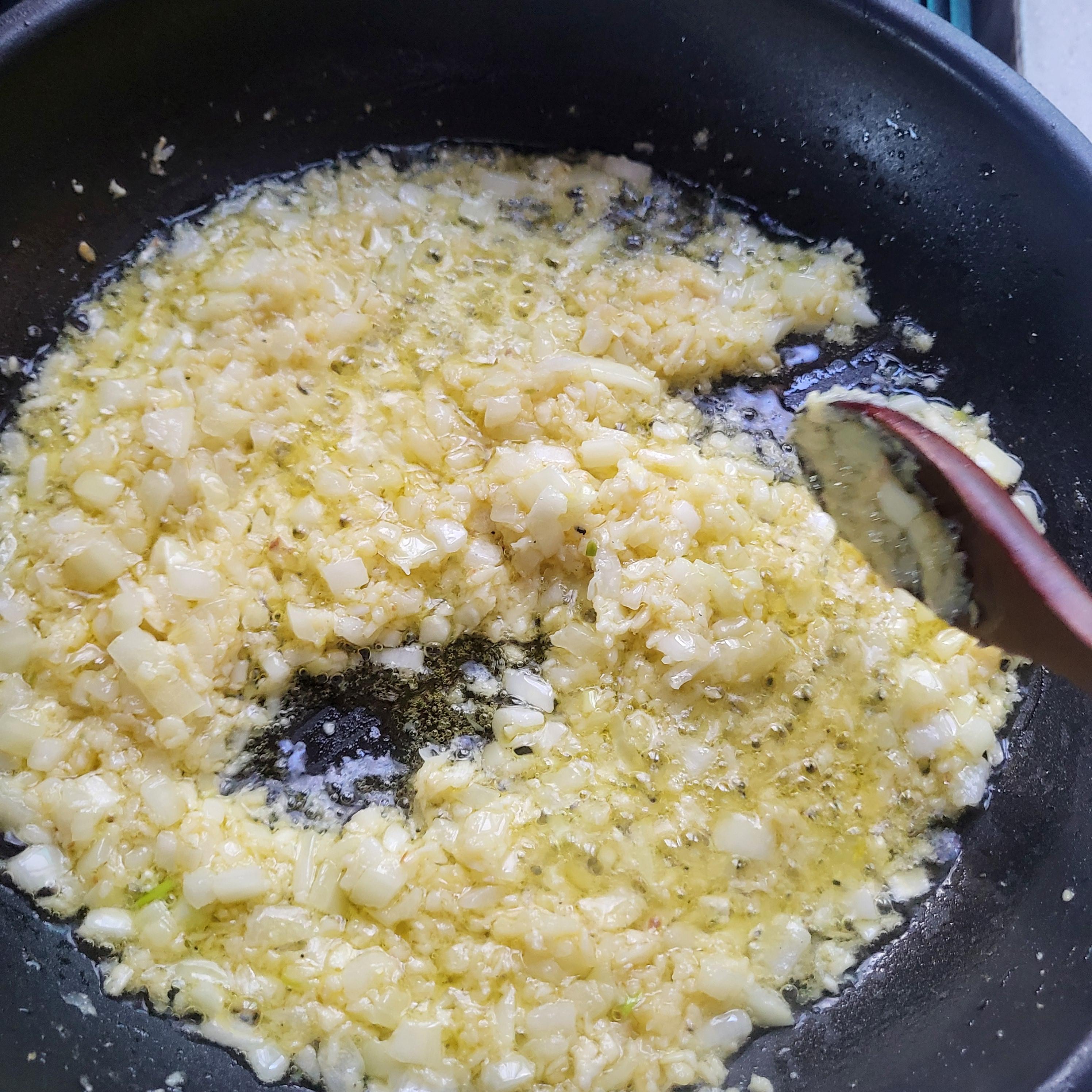 다진 마늘을 먼저 넣고 향이 살짝 올라오면 다진 양파를 넣고 양파가 살짝 투명해질 때까지 볶아주세요~