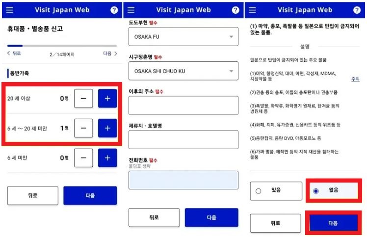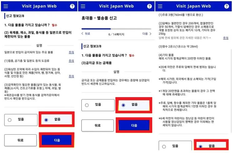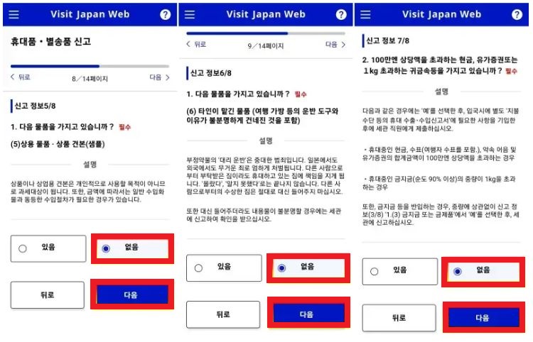 마지막으로 세관 신고 과정입니다. 아래의 캡쳐 화면에 따라 체크해주세요.