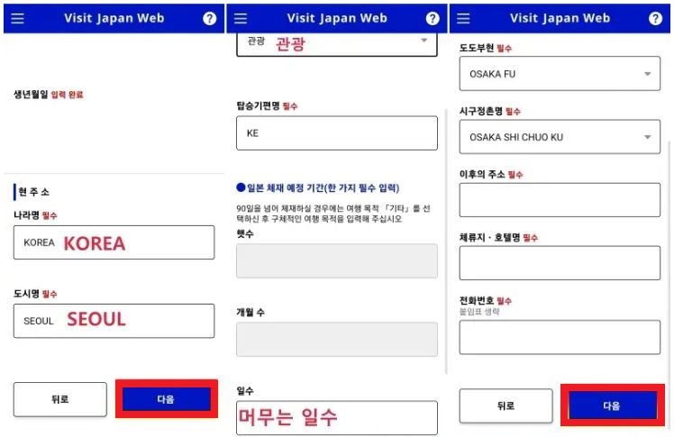 항공권 정보 입력이 끝나면 호텔(숙소) 정보도 기입해야 합니다.