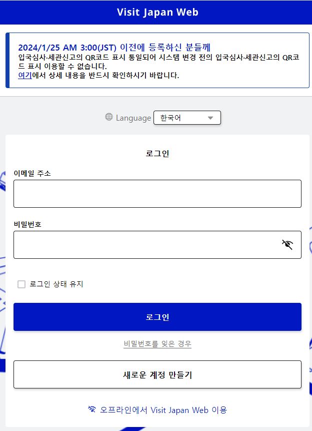 이 비짓 재팬웹이 지난 1월 25일 변경되어서 1월 25일 이전에 등록하신 분들도 새로 발급 받아야 하는데요!