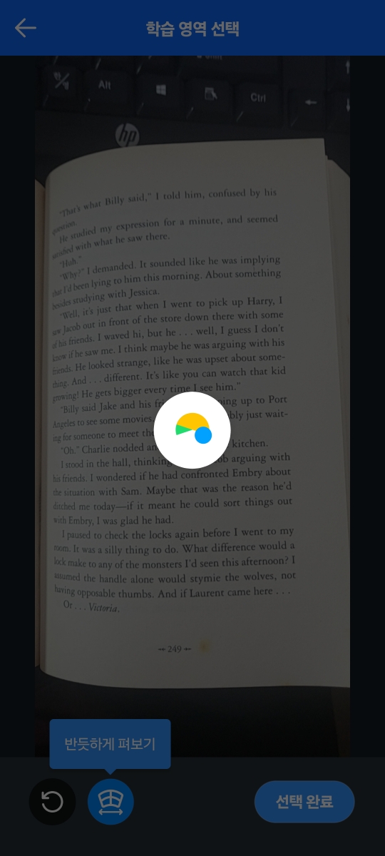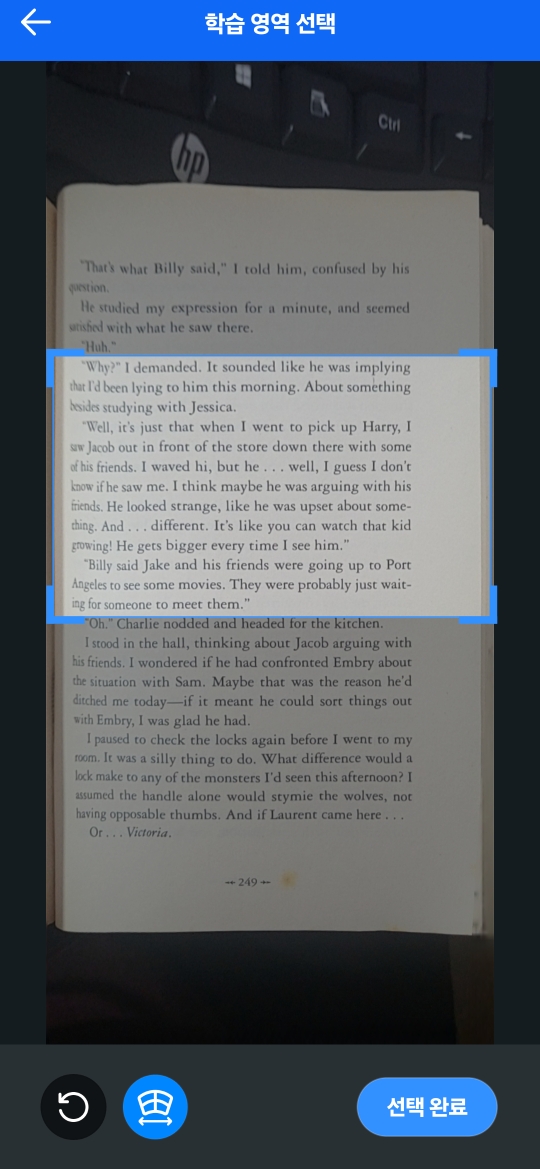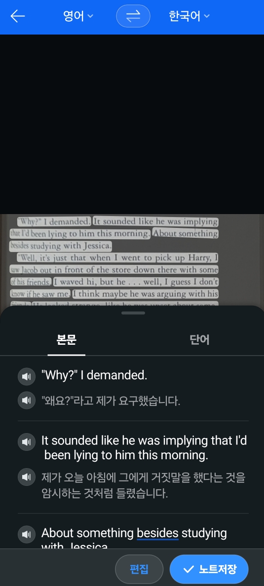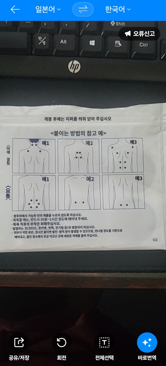 이미지 번역기능과는 다르게 이미지 전체촬영후 원하는 부분만 번역이 가능합니다.