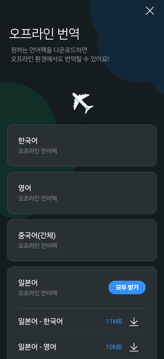 바로! 미리 이 오프라인에서 번역기능을 사용가능하게 원하는 언어팩을 미리 다운받으면 된답니다!