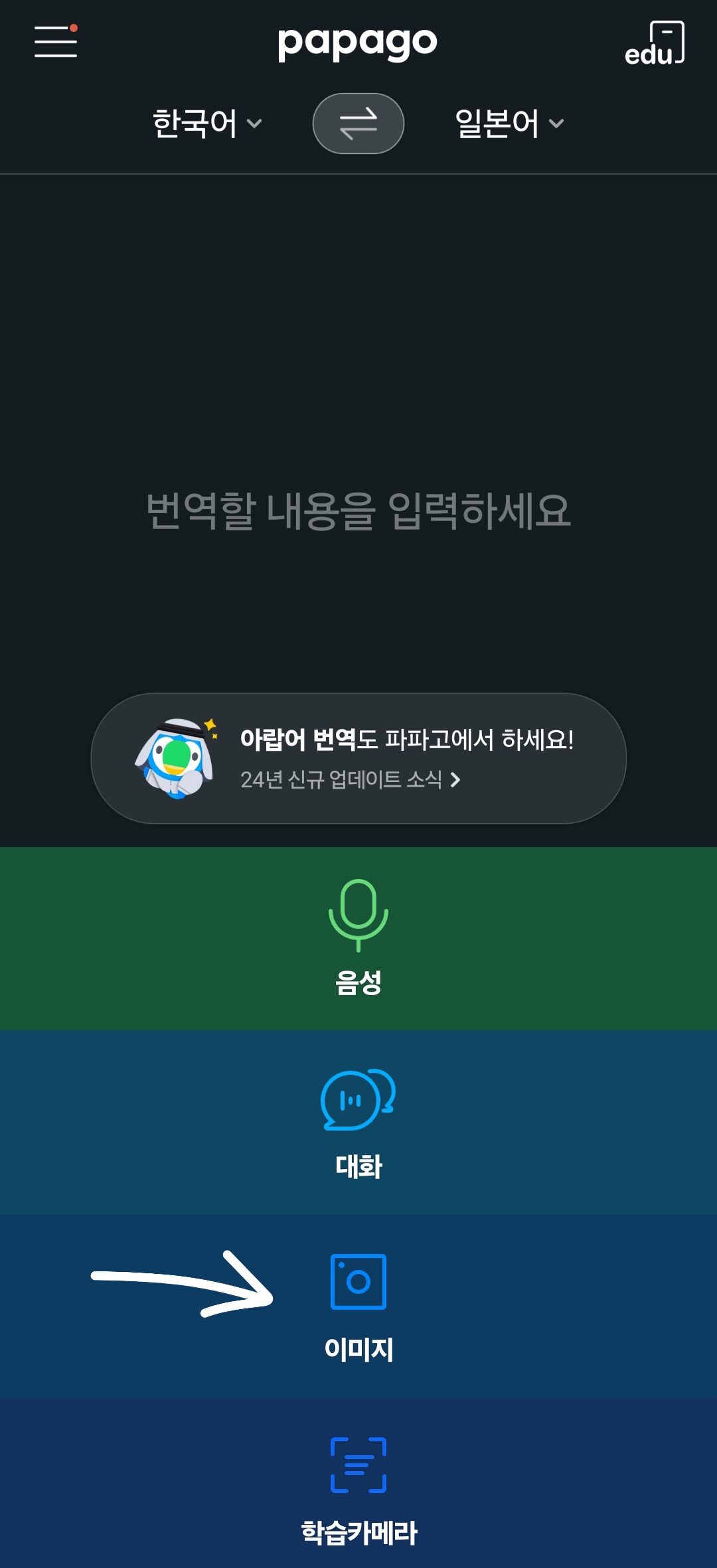 이미지 기능에서 바로 번역해야 하는 곳을 촬영해주세요.