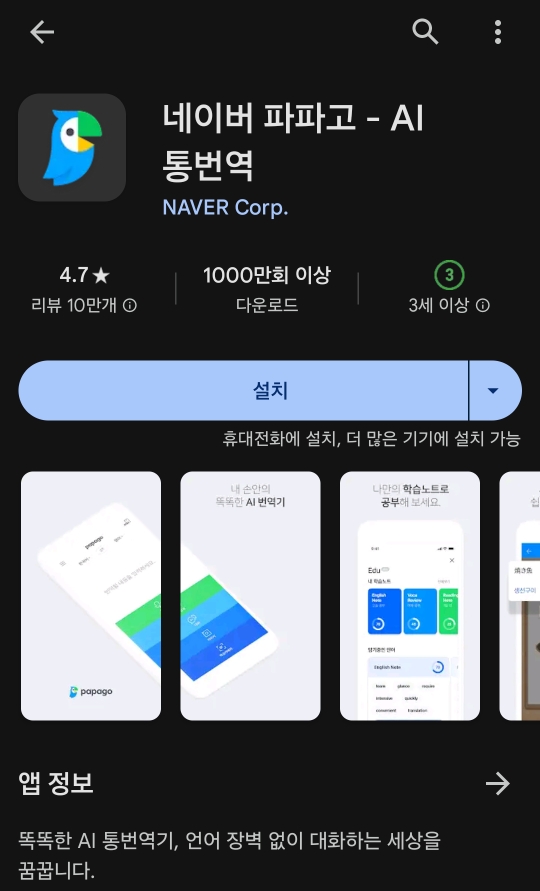 소개하기 앞서 먼저 파파고 어플을 검색해서 다운 받아주세요!